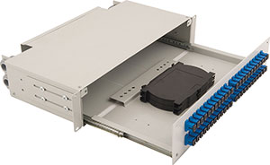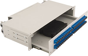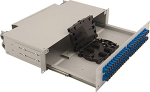 allows for easy access to the front patch cords as well as the splice trays and pigtails after
