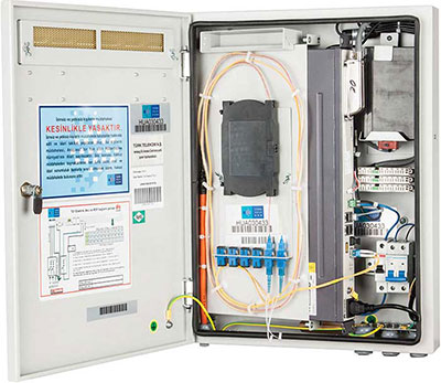 The FTTX-01 cabinet is integrated with service, power supply, monitoring, temperature control, and cable distribution units. The compact design requires less installation costs and space.